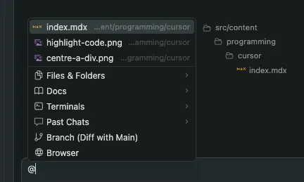When I originally wrote this post at the start of 2025, Cursor wasn’t too good at knowing what you were talking about. If you first highlight code before pressing Cmd + I, that code snippet, a will be given to Cursor as context when you ask your question.
