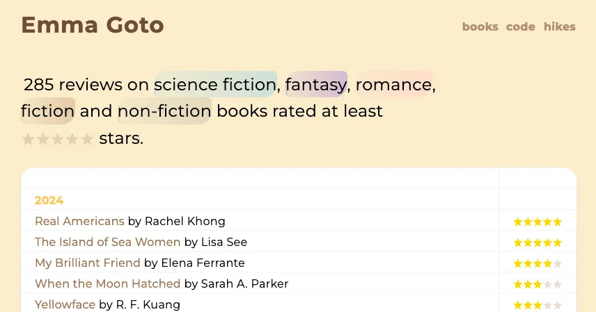 I’m a longtime Goodreads user, but have always wanted to try something better when it comes to tracking my books. So I’ve recently started using Hardcover, a competitor run by a small indie team. It’s still in the early days, and I know it’s hard to beat something as large as Goodreads, but I’m hopeful!