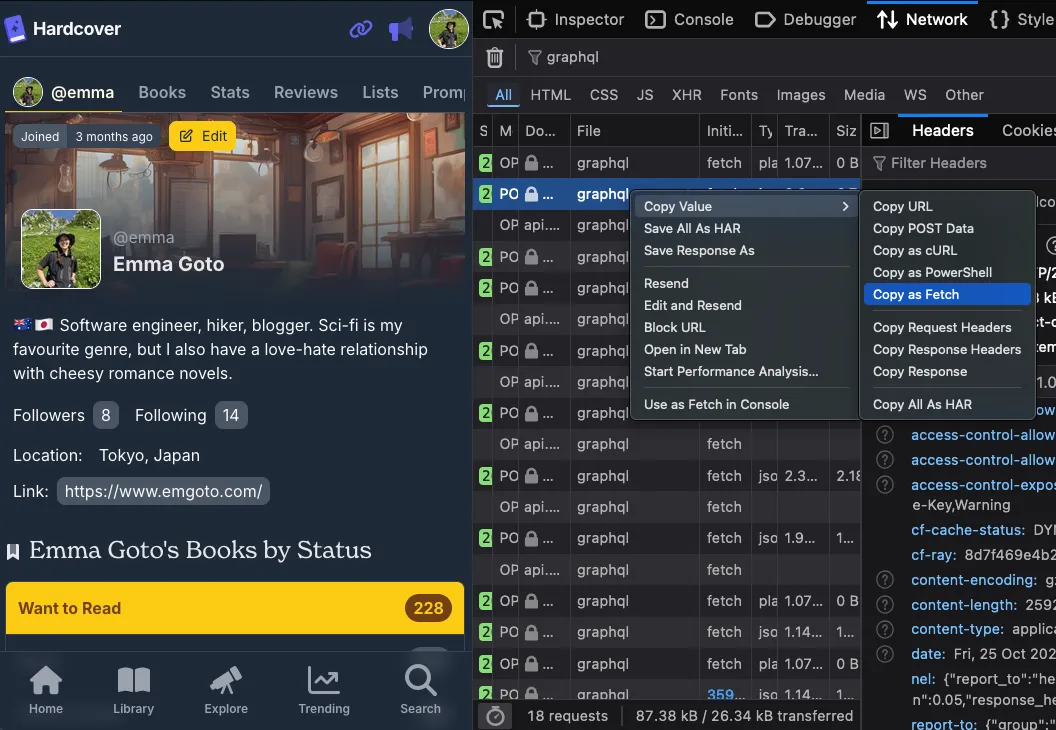And that’s it! I’m keen to see where Hardcover goes next - I’m hoping it does well, and finally we have a Goodreads-killer on our hands. If you’d like to follow me on Hardcover, I fortuitously have managed to snag the @emma handle.