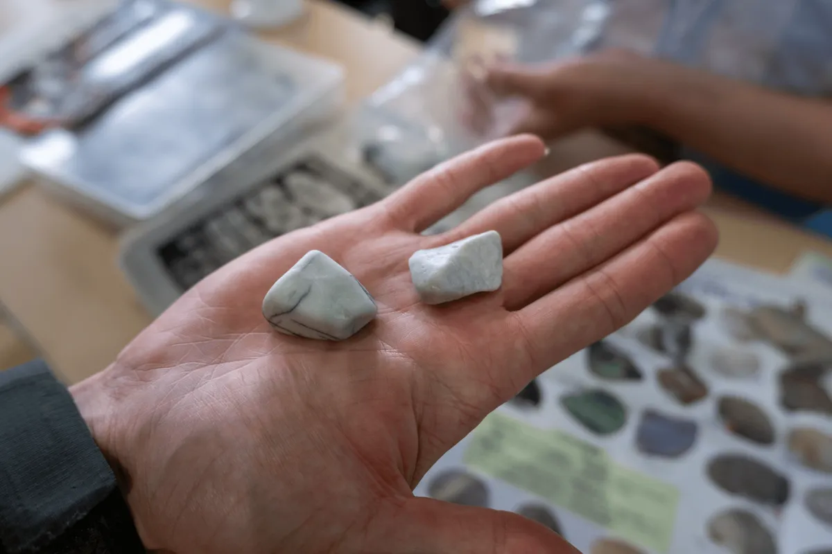 The rock expert explained to us that a lot of rocks can look quite shiny and special while they are wet, but an easier way to tell the difference is that once normal rocks dry, they can get quite dull-looking. It’s only the stones that continue to look shiny after they are dry that are possibly jade.