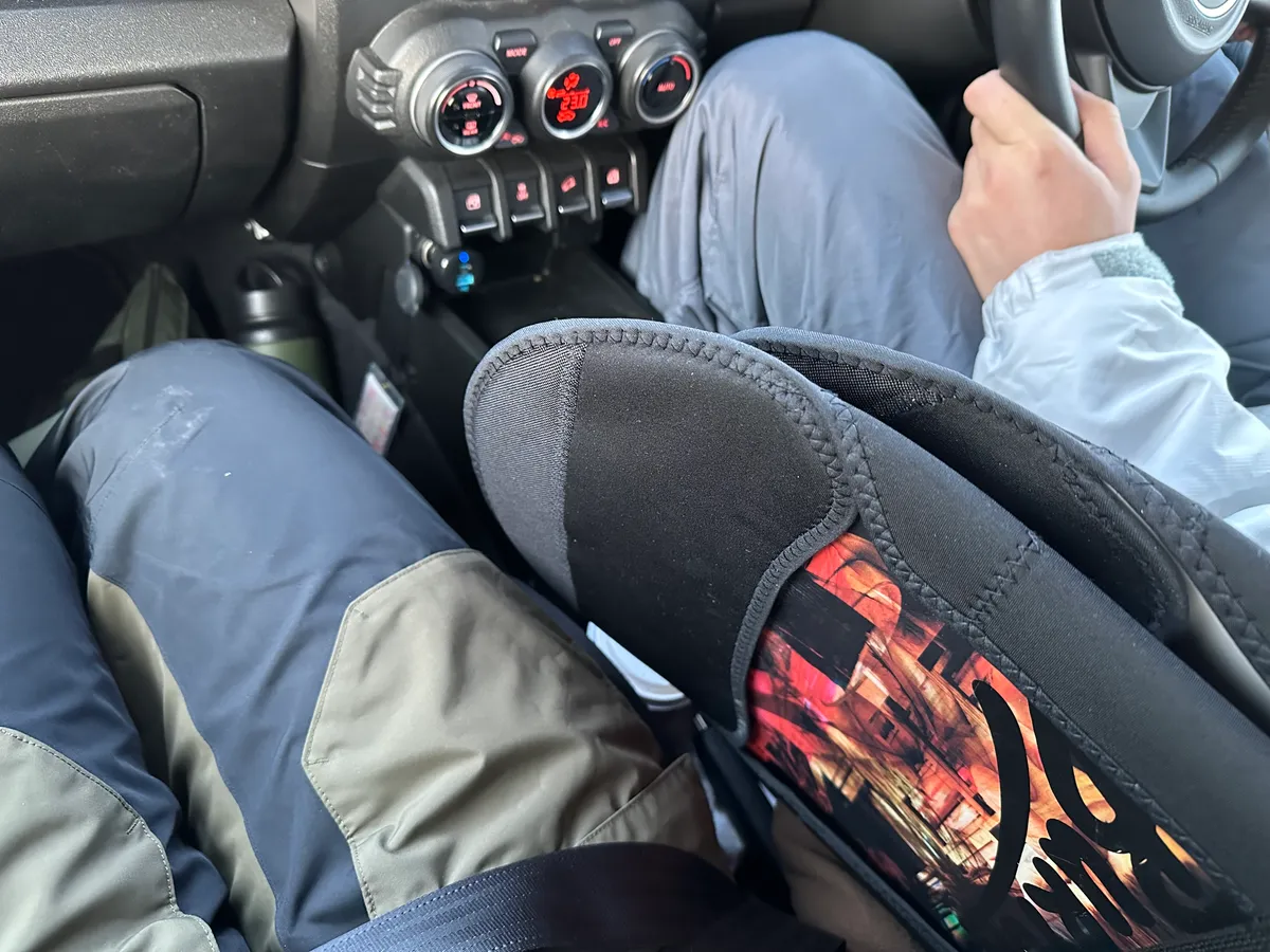 If you still want the front passenger seat up, you can fit it in between the two front seats. You’ll have to remove the bindings though. Our longer board is 160cm, and it still fits fine with some space to spare. I recommend bringing along a board cover so you don’t have to worry about damaging anything.