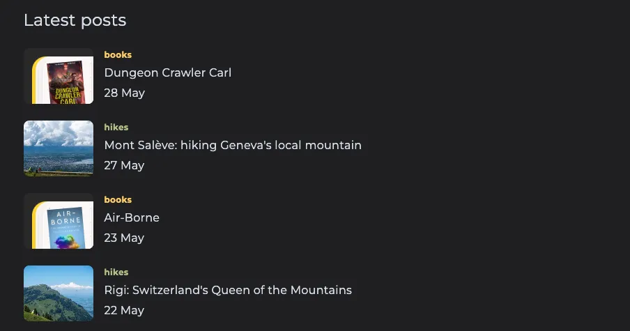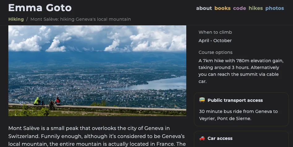 Normally I try to aim for one new blog post a week, but I also didn’t want to spend all of June blogging about Switzerland, so I got out all five hike write-ups for Grosser Mythen, Rigi, Mont Saleve, Rochers de Naye and La Palette this month.